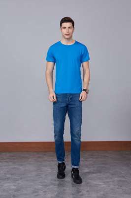 速干T恤 輕薄透氣男女情侶款圓領短袖速干T恤 湖藍色